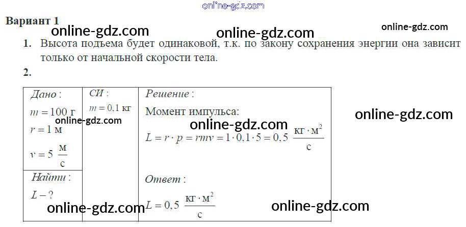 Готовые домашние задания по Физике за 10 класс Самостоятельные и контрольные работы Ерюткин, Ерюткина Базовый и углубленный уровень 2018 - СР №8 Законы сохранения в механике 1
