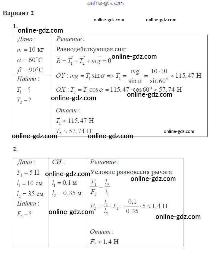 Готовые домашние задания по Физике за 10 класс Самостоятельные и контрольные работы Ерюткин, Ерюткина Базовый и углубленный уровень 2018 - СР №1 Статистика и гидромеханика 2