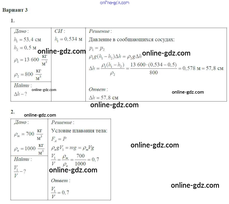 Готовые домашние задания по Физике за 10 класс Самостоятельные и контрольные работы Ерюткин, Ерюткина Базовый и углубленный уровень 2018 - СР №2 Статистика и гидромеханика 3