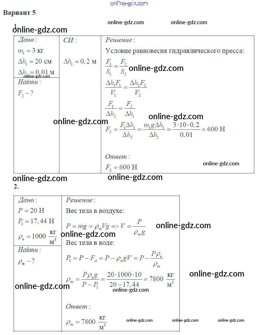 Готовые домашние задания по Физике за 10 класс Самостоятельные и контрольные работы Ерюткин, Ерюткина Базовый и углубленный уровень 2018 - СР №2 Статистика и гидромеханика 5