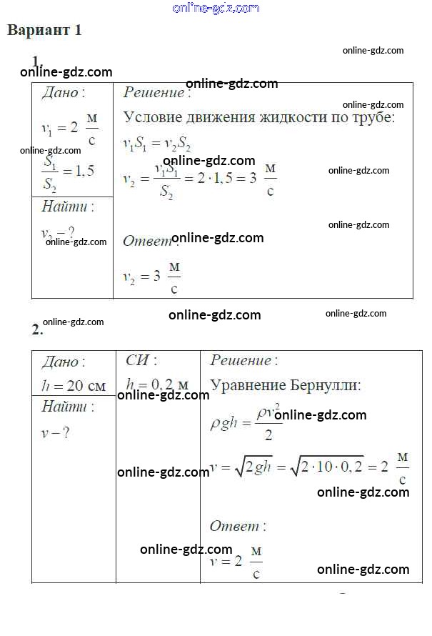 Готовые домашние задания по Физике за 10 класс Самостоятельные и контрольные работы Ерюткин, Ерюткина Базовый и углубленный уровень 2018 - СР №3 Статистика и гидромеханика 1