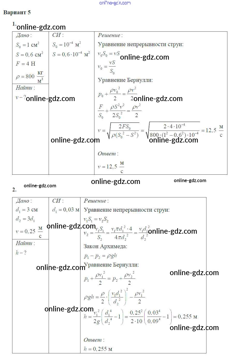 Готовые домашние задания по Физике за 10 класс Самостоятельные и контрольные работы Ерюткин, Ерюткина Базовый и углубленный уровень 2018 - СР №3 Статистика и гидромеханика 5