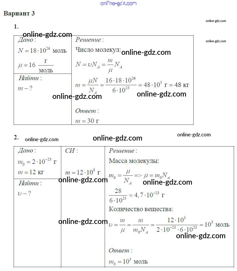 Готовые домашние задания по Физике за 10 класс Самостоятельные и контрольные работы Ерюткин, Ерюткина Базовый и углубленный уровень 2018 - СР №1 Основы мкт 3