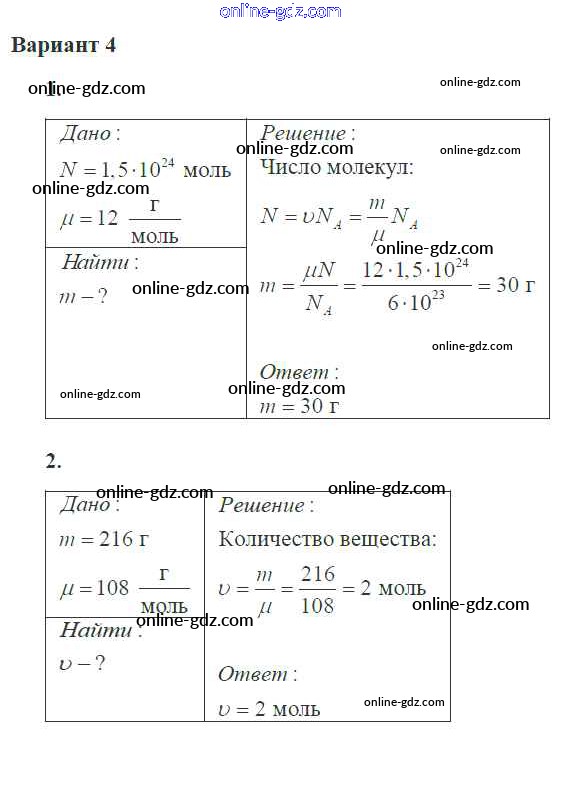 Готовые домашние задания по Физике за 10 класс Самостоятельные и контрольные работы Ерюткин, Ерюткина Базовый и углубленный уровень 2018 - СР №1 Основы мкт 4