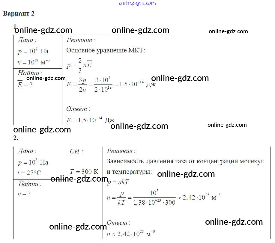Готовые домашние задания по Физике за 10 класс Самостоятельные и контрольные работы Ерюткин, Ерюткина Базовый и углубленный уровень 2018 - СР №2 Основы мкт 2
