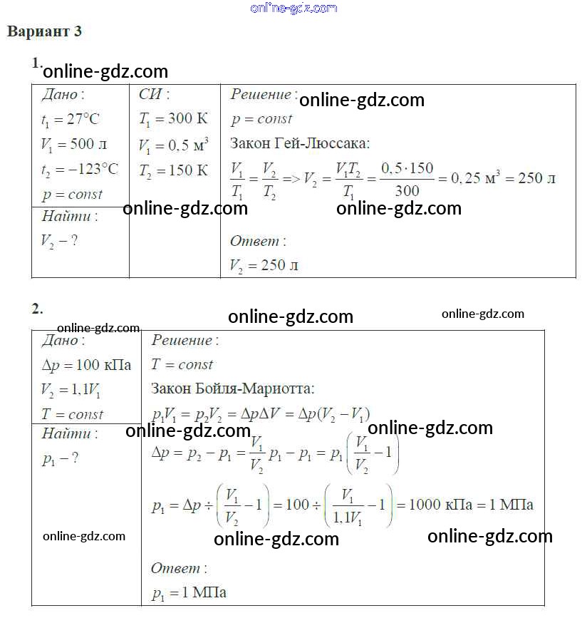 Готовые домашние задания по Физике за 10 класс Самостоятельные и контрольные работы Ерюткин, Ерюткина Базовый и углубленный уровень 2018 - СР №3 Основы мкт 3