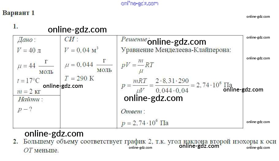 Готовые домашние задания по Физике за 10 класс Самостоятельные и контрольные работы Ерюткин, Ерюткина Базовый и углубленный уровень 2018 - СР №4 Основы мкт 1
