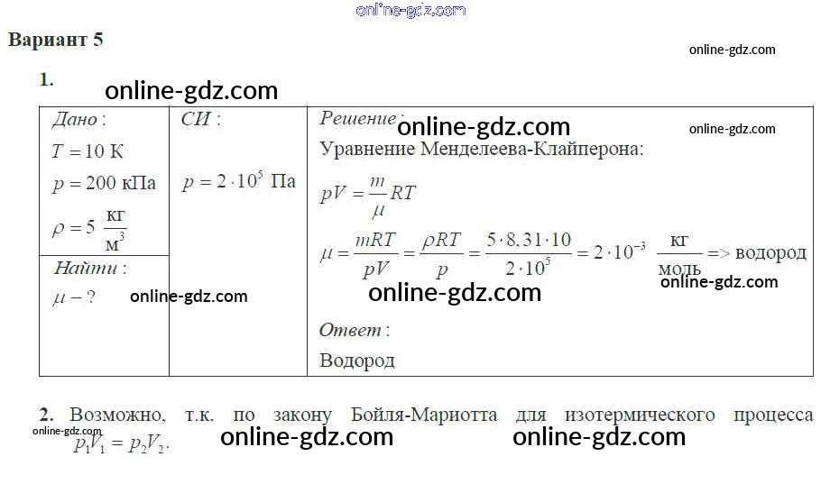 Готовые домашние задания по Физике за 10 класс Самостоятельные и контрольные работы Ерюткин, Ерюткина Базовый и углубленный уровень 2018 - СР №4 Основы мкт 5