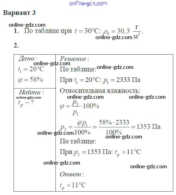 Готовые домашние задания по Физике за 10 класс Самостоятельные и контрольные работы Ерюткин, Ерюткина Базовый и углубленный уровень 2018 - СР №5 Основы мкт 3