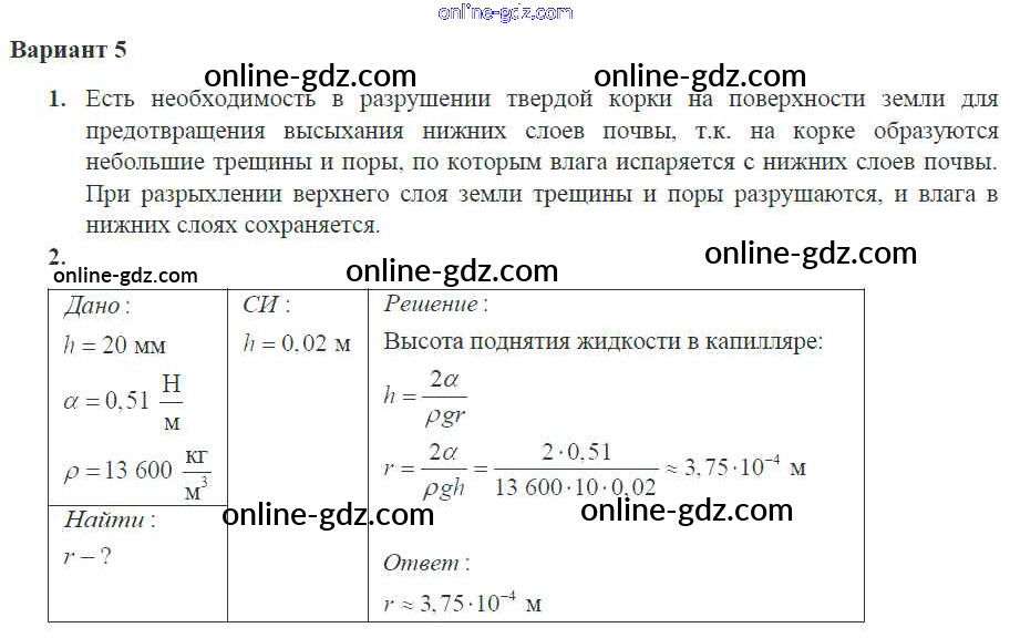 Готовые домашние задания по Физике за 10 класс Самостоятельные и контрольные работы Ерюткин, Ерюткина Базовый и углубленный уровень 2018 - СР №6 Основы мкт 5