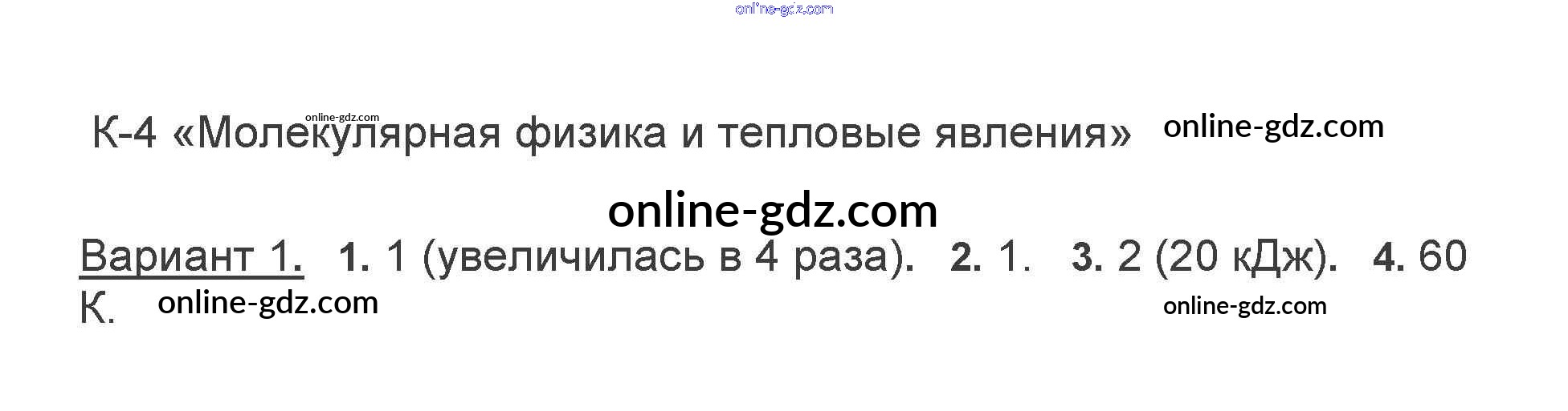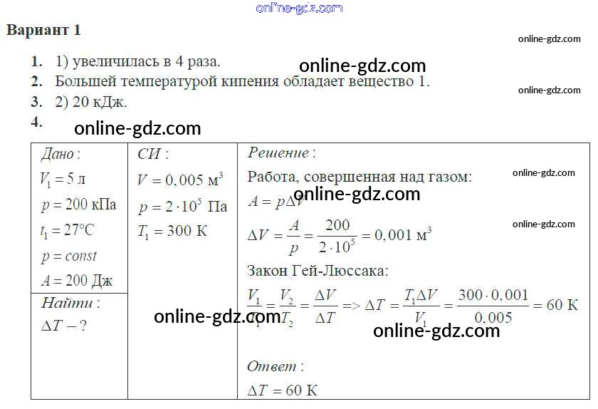 Готовые домашние задания по Физике за 10 класс Самостоятельные и контрольные работы Ерюткин, Ерюткина Базовый и углубленный уровень 2018 - КР Основы термодинамики 1