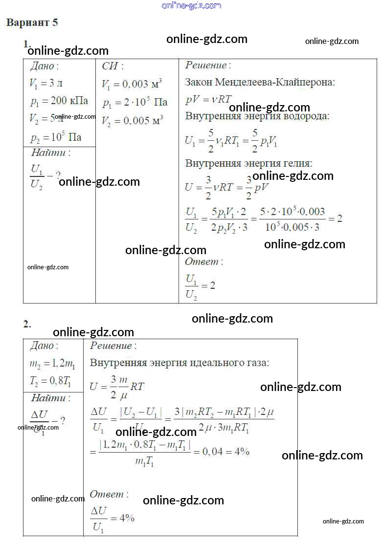 Готовые домашние задания по Физике за 10 класс Самостоятельные и контрольные работы Ерюткин, Ерюткина Базовый и углубленный уровень 2018 - СР №1 Основы термодинамики 5