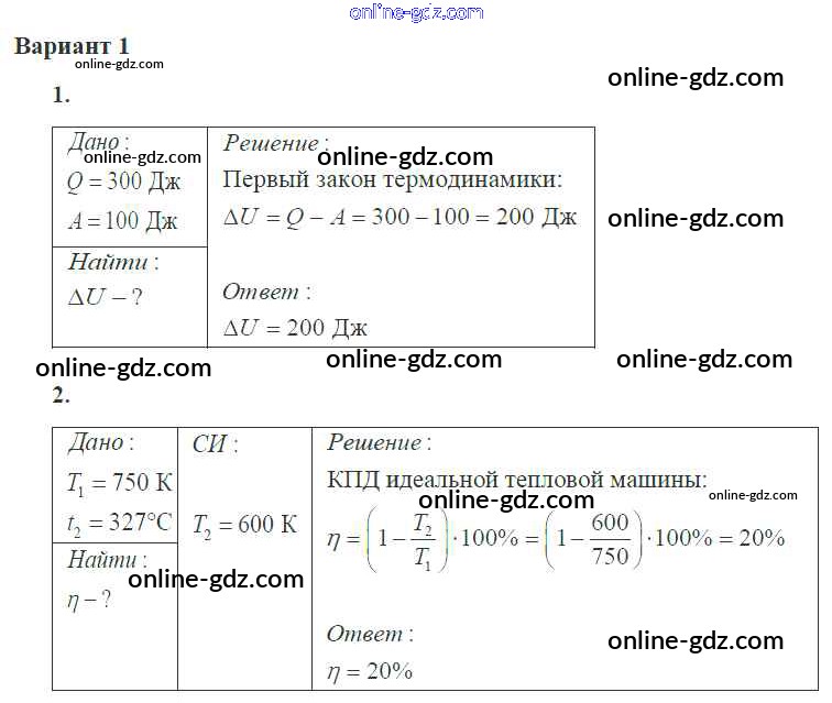 Готовые домашние задания по Физике за 10 класс Самостоятельные и контрольные работы Ерюткин, Ерюткина Базовый и углубленный уровень 2018 - СР №3 Основы термодинамики 1