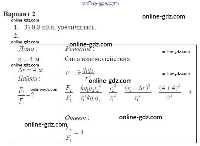 Готовые домашние задания по Физике за 10 класс Самостоятельные и контрольные работы Ерюткин, Ерюткина Базовый и углубленный уровень 2018 - СР №1 Электростатика 2