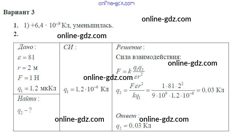Готовые домашние задания по Физике за 10 класс Самостоятельные и контрольные работы Ерюткин, Ерюткина Базовый и углубленный уровень 2018 - СР №1 Электростатика 3