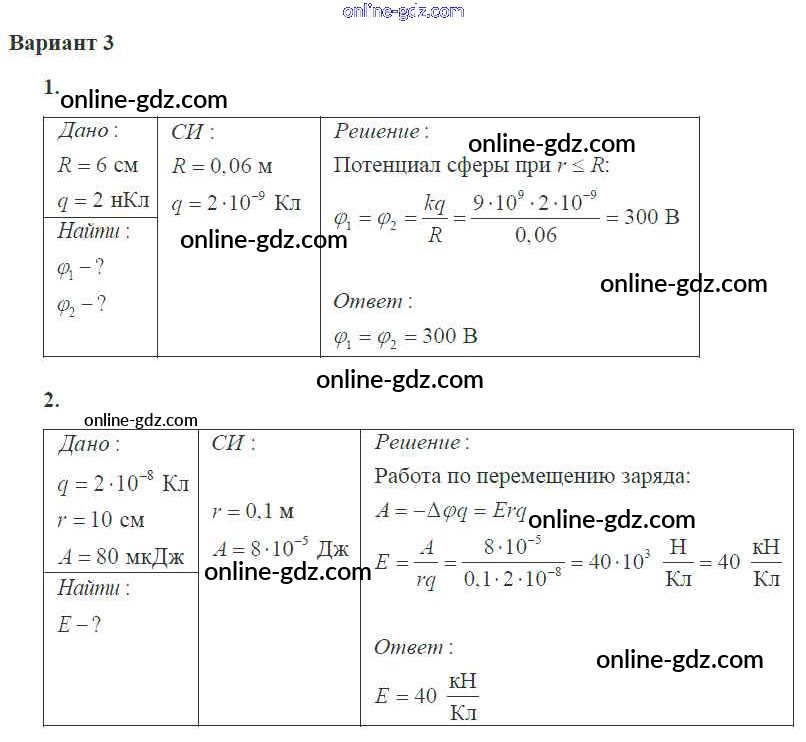 Готовые домашние задания по Физике за 10 класс Самостоятельные и контрольные работы Ерюткин, Ерюткина Базовый и углубленный уровень 2018 - СР №3 Электростатика 3