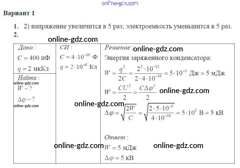 Готовые домашние задания по Физике за 10 класс Самостоятельные и контрольные работы Ерюткин, Ерюткина Базовый и углубленный уровень 2018 - СР №4 Электростатика 1