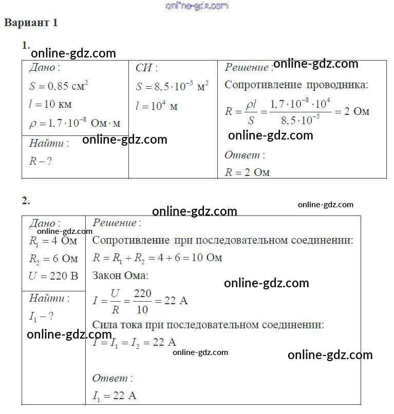 Готовые домашние задания по Физике за 10 класс Самостоятельные и контрольные работы Ерюткин, Ерюткина Базовый и углубленный уровень 2018 - СР №2 Постоянный электрический ток 1