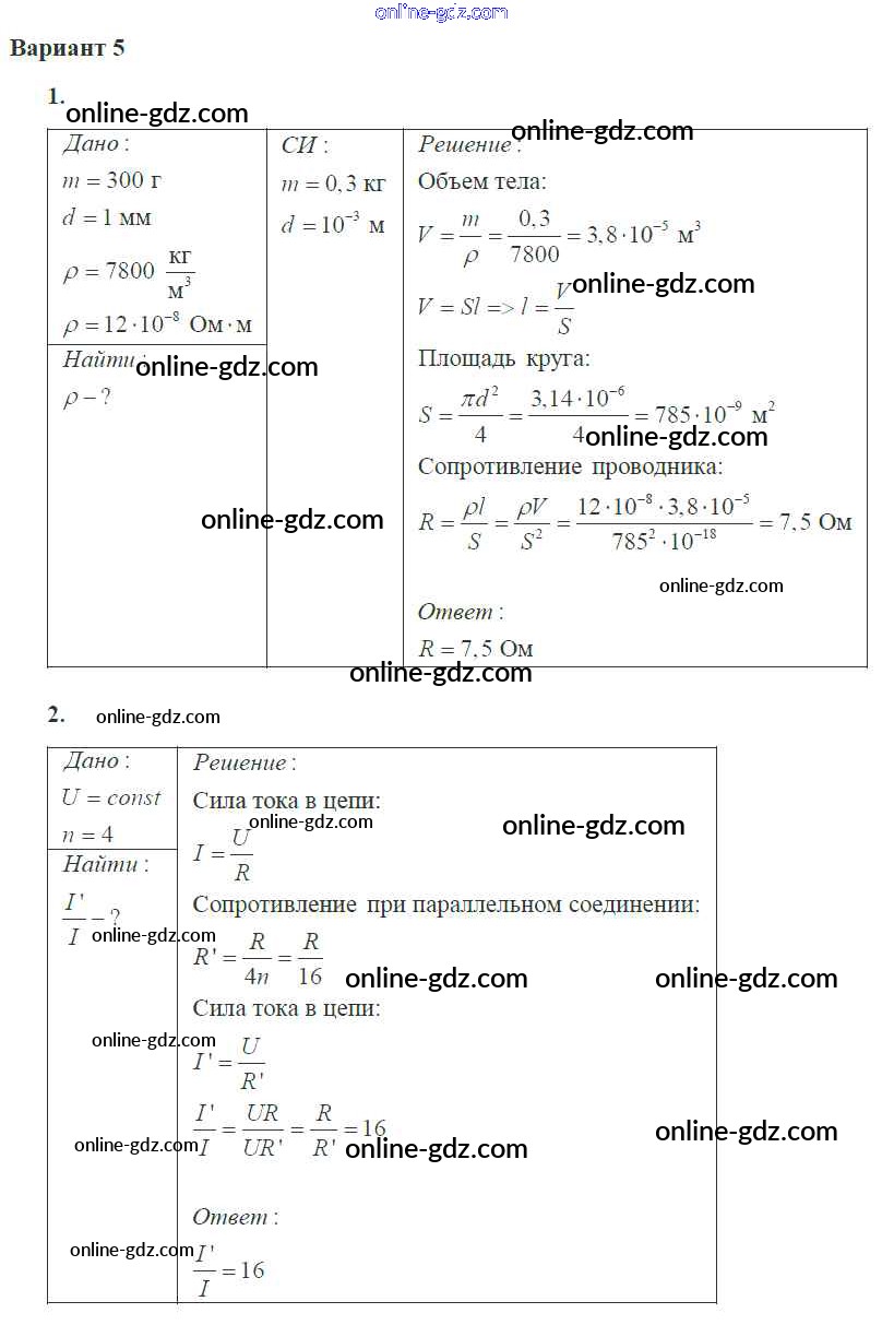 Готовые домашние задания по Физике за 10 класс Самостоятельные и контрольные работы Ерюткин, Ерюткина Базовый и углубленный уровень 2018 - СР №2 Постоянный электрический ток 5
