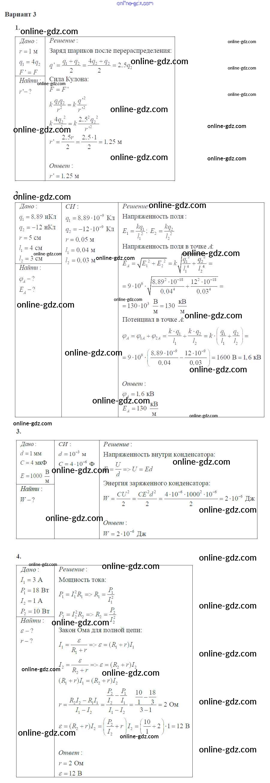 Готовые домашние задания по Физике за 10 класс Самостоятельные и контрольные работы Ерюткин, Ерюткина Базовый и углубленный уровень 2018 - КР Постоянный электрический ток 3