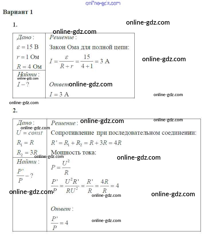 Готовые домашние задания по Физике за 10 класс Самостоятельные и контрольные работы Ерюткин, Ерюткина Базовый и углубленный уровень 2018 - СР №3 Постоянный электрический ток 1