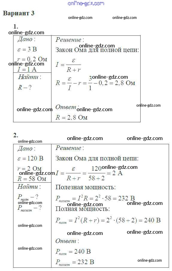 Готовые домашние задания по Физике за 10 класс Самостоятельные и контрольные работы Ерюткин, Ерюткина Базовый и углубленный уровень 2018 - СР №3 Постоянный электрический ток 3