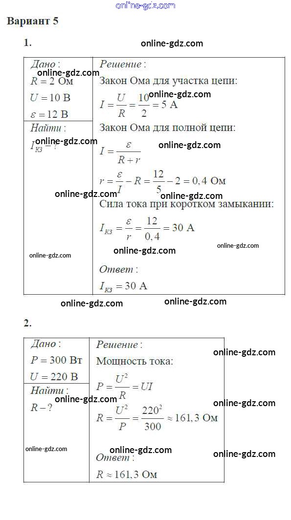 Готовые домашние задания по Физике за 10 класс Самостоятельные и контрольные работы Ерюткин, Ерюткина Базовый и углубленный уровень 2018 - СР №3 Постоянный электрический ток 5