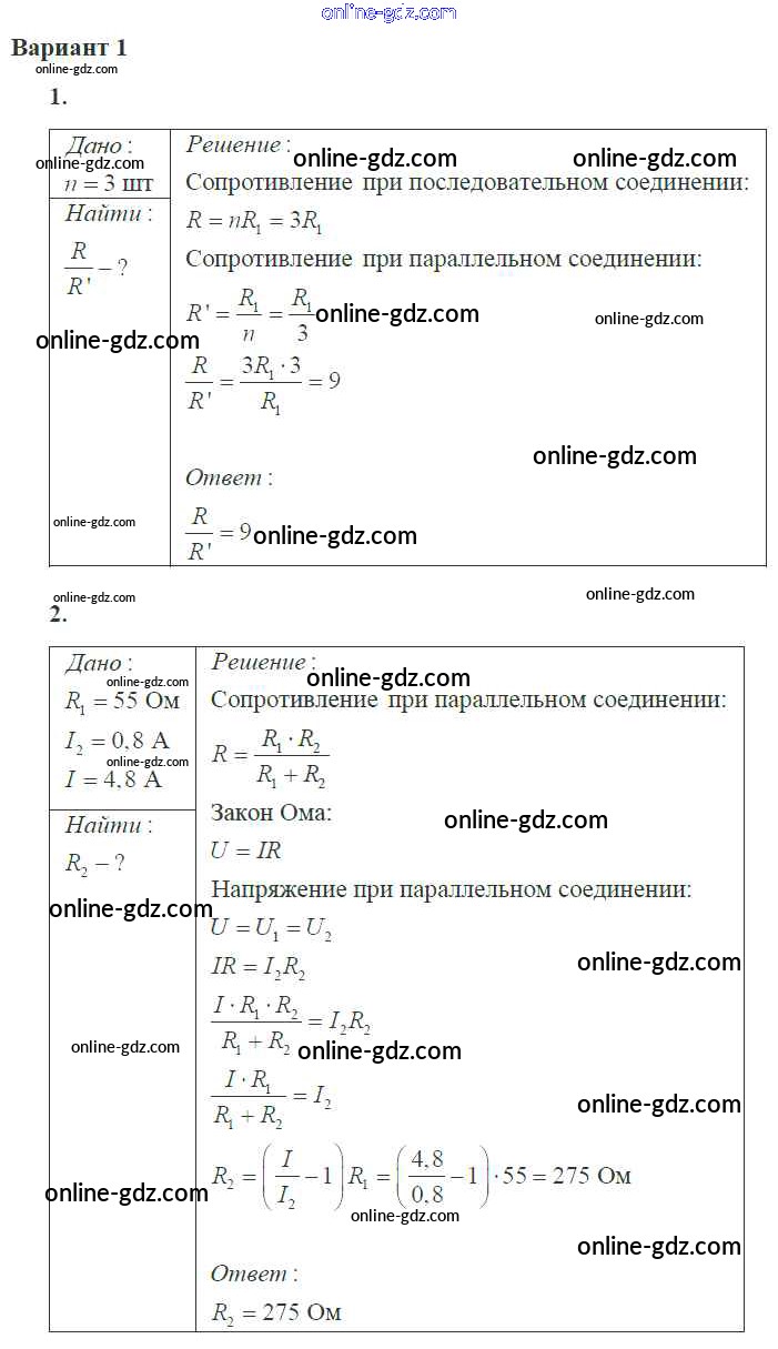Готовые домашние задания по Физике за 10 класс Самостоятельные и контрольные работы Ерюткин, Ерюткина Базовый и углубленный уровень 2018 - СР №4 Постоянный электрический ток 1