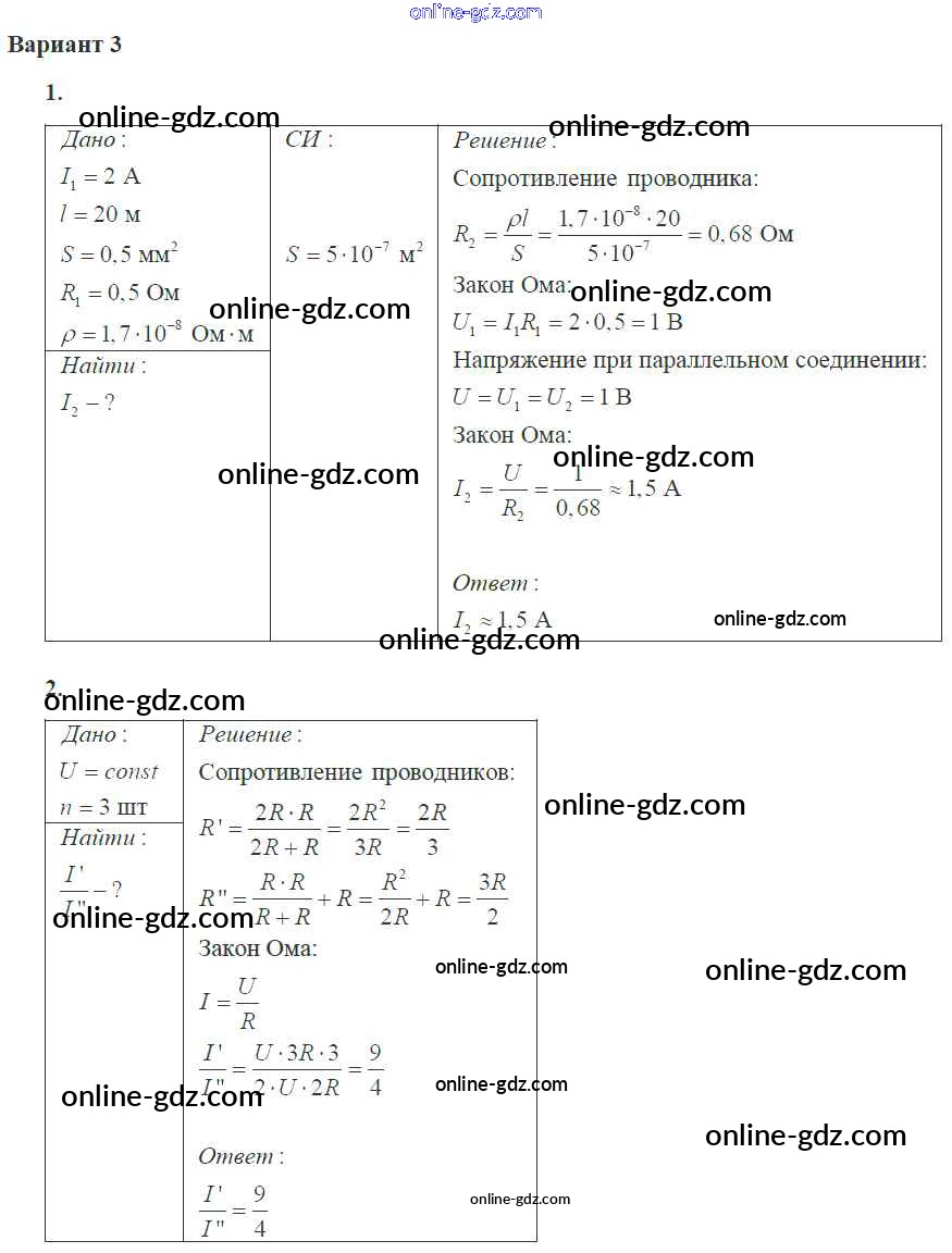 Готовые домашние задания по Физике за 10 класс Самостоятельные и контрольные работы Ерюткин, Ерюткина Базовый и углубленный уровень 2018 - СР №4 Постоянный электрический ток 3