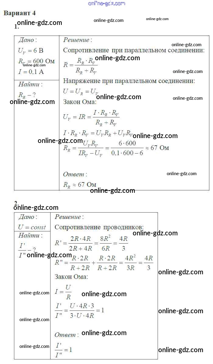 Готовые домашние задания по Физике за 10 класс Самостоятельные и контрольные работы Ерюткин, Ерюткина Базовый и углубленный уровень 2018 - СР №4 Постоянный электрический ток 4
