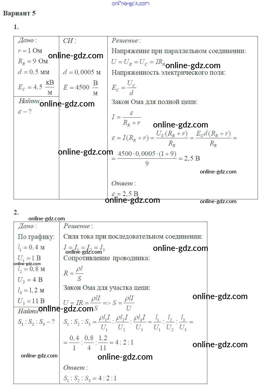 Готовые домашние задания по Физике за 10 класс Самостоятельные и контрольные работы Ерюткин, Ерюткина Базовый и углубленный уровень 2018 - СР №4 Постоянный электрический ток 5