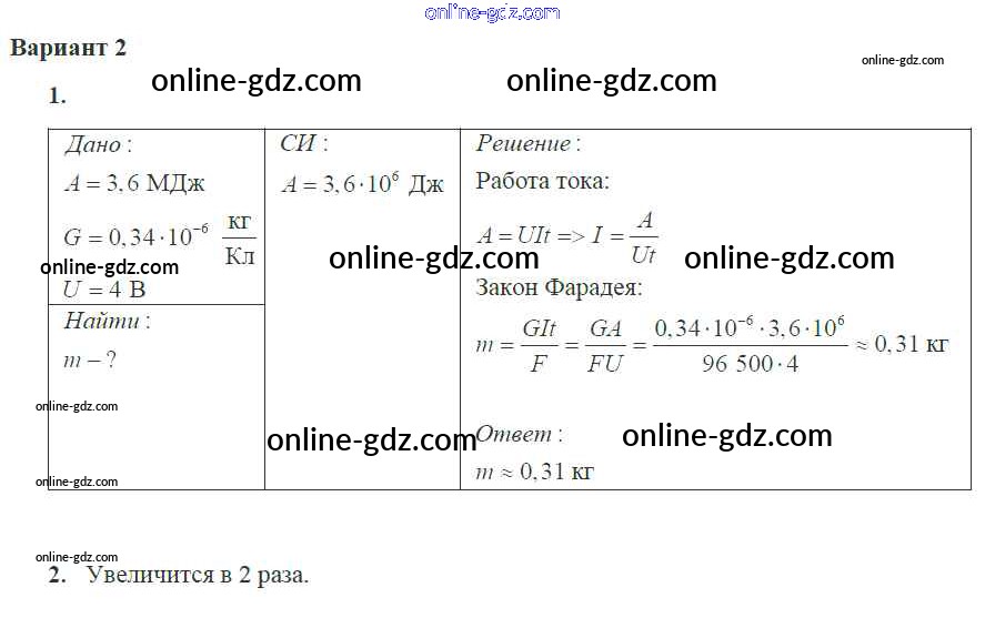 Готовые домашние задания по Физике за 10 класс Самостоятельные и контрольные работы Ерюткин, Ерюткина Базовый и углубленный уровень 2018 - СР №1 Электрический ток в разных средах 2