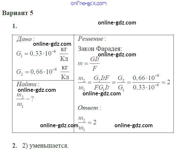 Готовые домашние задания по Физике за 10 класс Самостоятельные и контрольные работы Ерюткин, Ерюткина Базовый и углубленный уровень 2018 - СР №1 Электрический ток в разных средах 5
