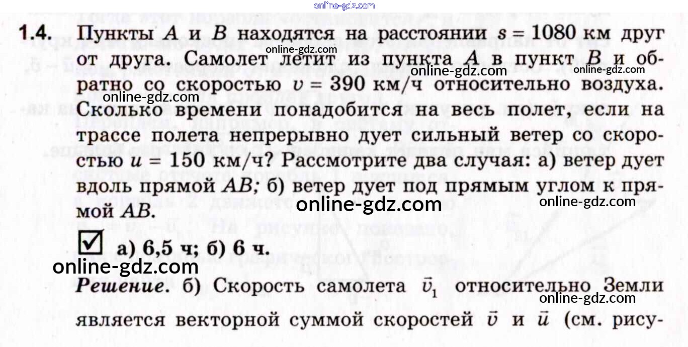 Готовые домашние задания по Физике за 10, 11 класс Задачник Гельфгат, Генденштейн Профильный уровень 2021 - 1. Прямолинейное равномерное движение 1.4