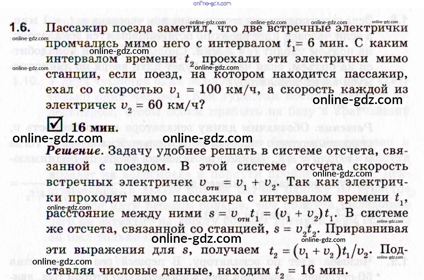 Готовые домашние задания по Физике за 10, 11 класс Задачник Гельфгат, Генденштейн Профильный уровень 2021 - 1. Прямолинейное равномерное движение 1.6