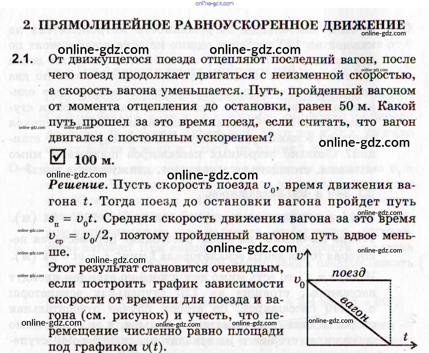 Готовые домашние задания по Физике за 10, 11 класс Задачник Гельфгат, Генденштейн Профильный уровень 2021 - 2. Прямолинейное равноускоренное движение 2.1