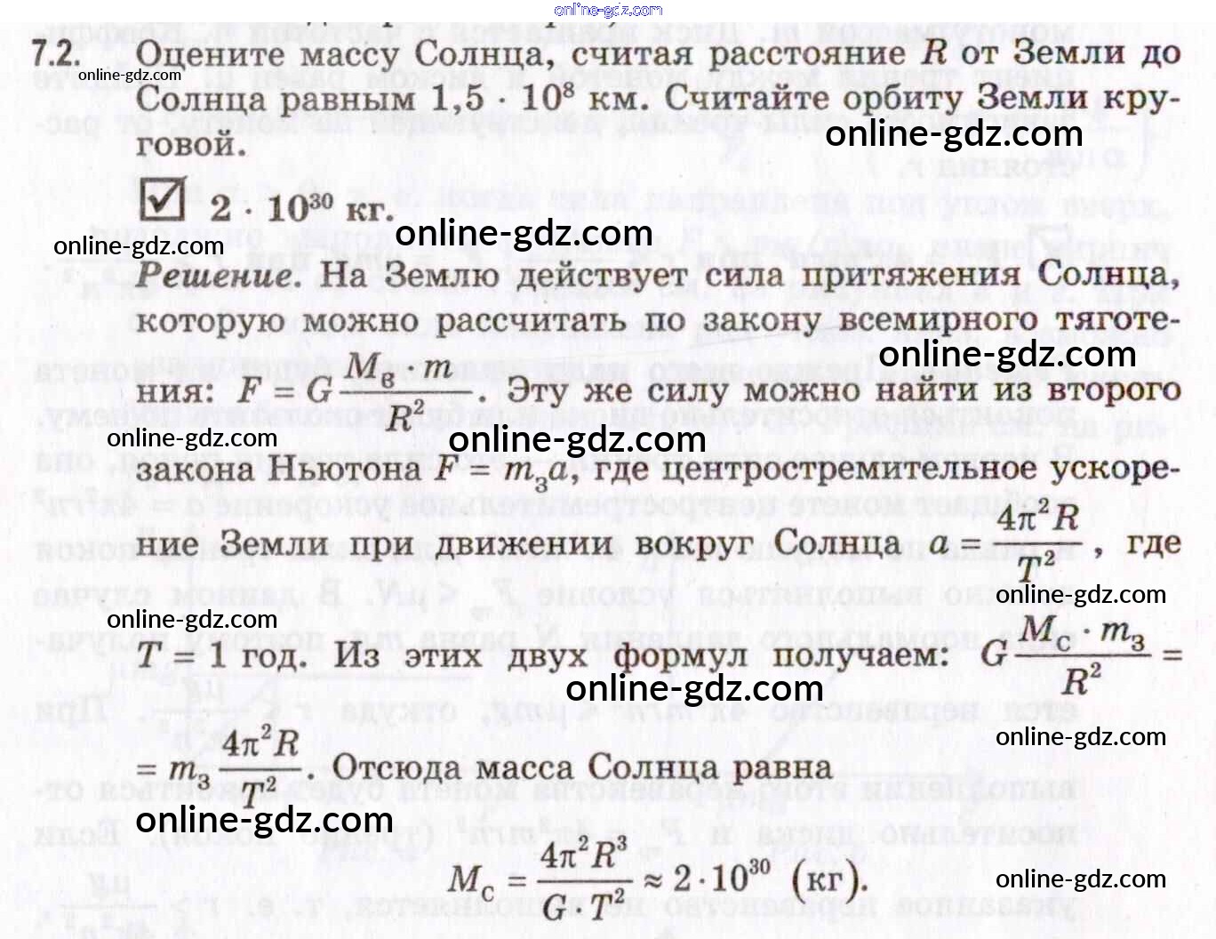 Готовые домашние задания по Физике за 10, 11 класс Задачник Гельфгат, Генденштейн Профильный уровень 2021 - 7. Закон всемирного тяготения. Сила тяжести и вес тела 7.2
