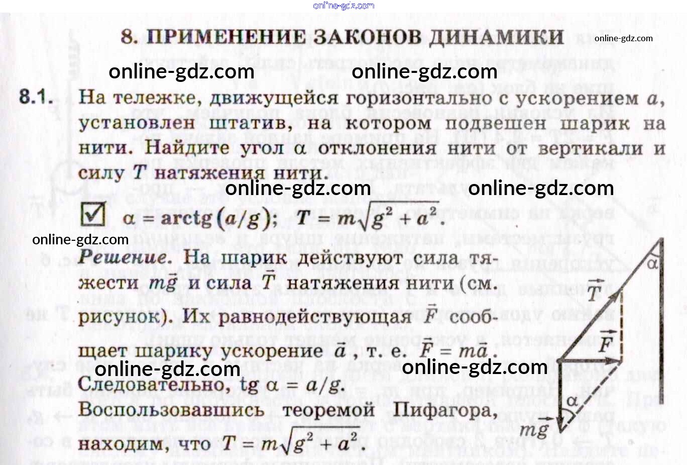 Готовые домашние задания по Физике за 10, 11 класс Задачник Гельфгат, Генденштейн Профильный уровень 2021 - 8. Применение законов динамики 8.1