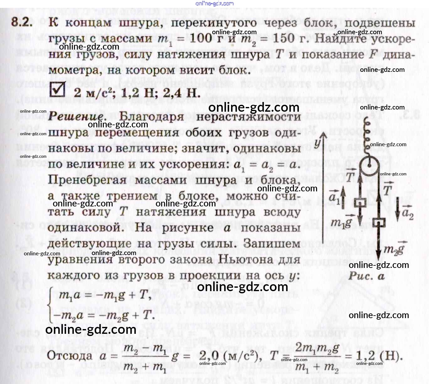 Готовые домашние задания по Физике за 10, 11 класс Задачник Гельфгат, Генденштейн Профильный уровень 2021 - 8. Применение законов динамики 8.2
