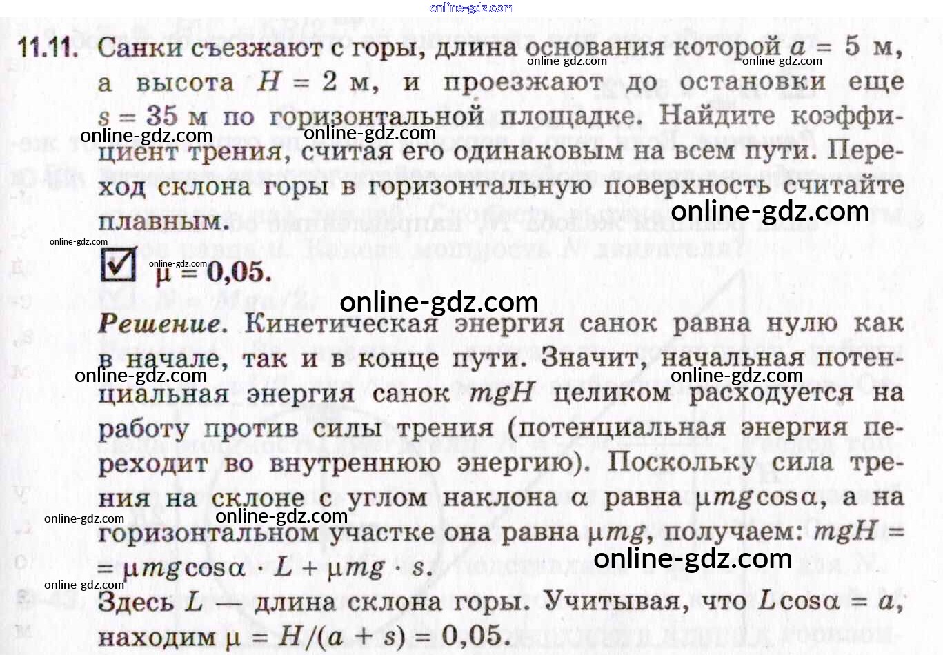 Готовые домашние задания по Физике за 10, 11 класс Задачник Гельфгат, Генденштейн Профильный уровень 2021 - 11. Механическая работа. Энергия. Закон сохранения энергии 11.11