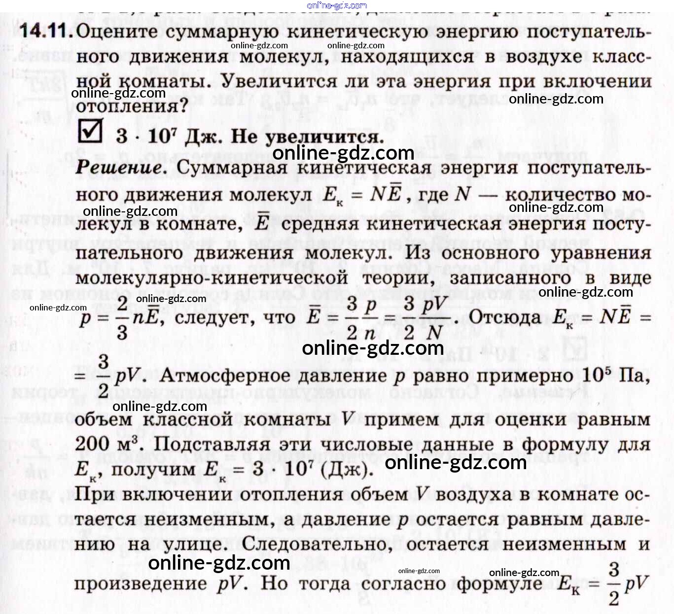 Готовые домашние задания по Физике за 10, 11 класс Задачник Гельфгат, Генденштейн Профильный уровень 2021 - 14. Молекулярно-кинетическая теория 14.11