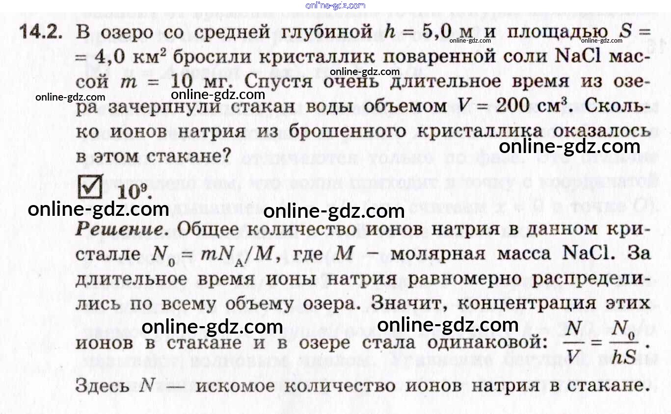 Готовые домашние задания по Физике за 10, 11 класс Задачник Гельфгат, Генденштейн Профильный уровень 2021 - 14. Молекулярно-кинетическая теория 14.2