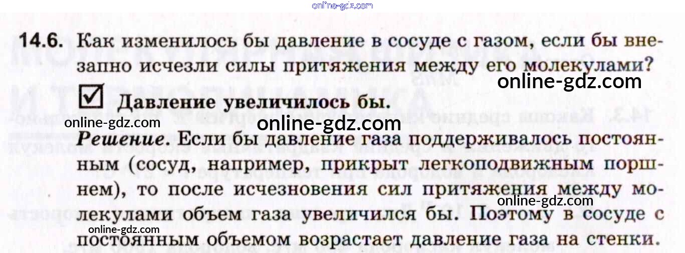 Готовые домашние задания по Физике за 10, 11 класс Задачник Гельфгат, Генденштейн Профильный уровень 2021 - 14. Молекулярно-кинетическая теория 14.6