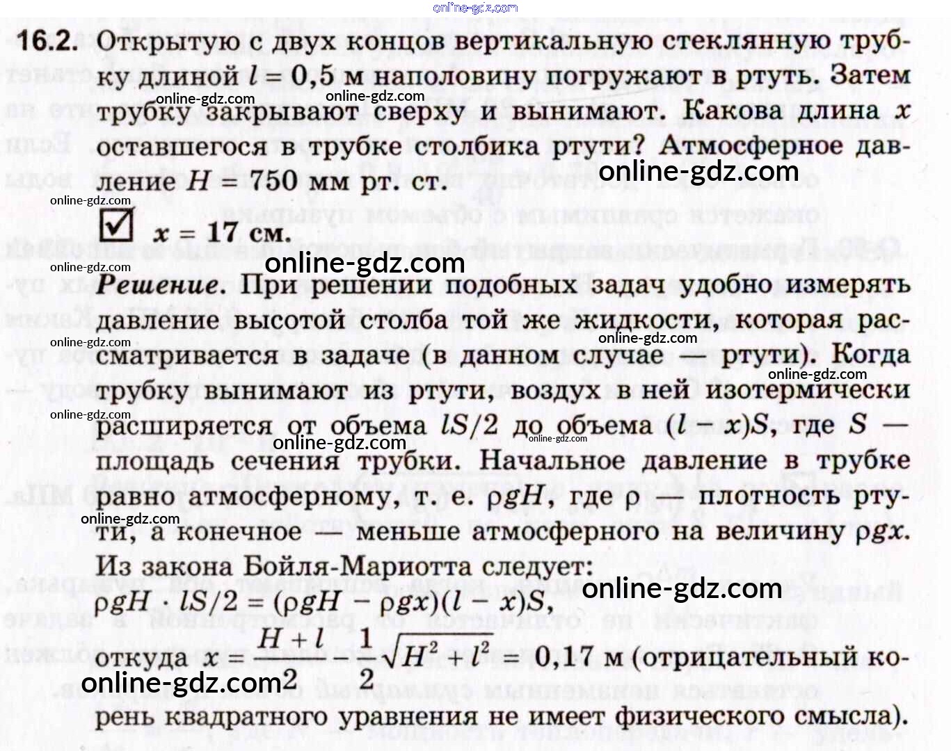 Готовые домашние задания по Физике за 10, 11 класс Задачник Гельфгат, Генденштейн Профильный уровень 2021 - 16. Газовые законы 16.2