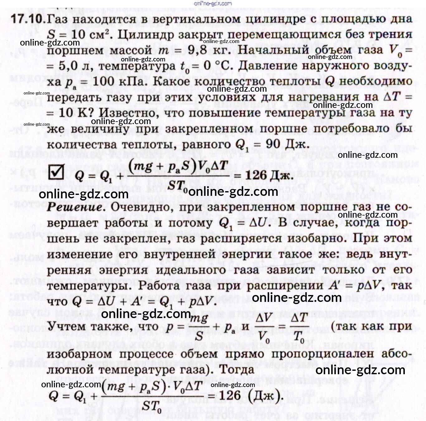 Готовые домашние задания по Физике за 10, 11 класс Задачник Гельфгат, Генденштейн Профильный уровень 2021 - 17. Законы термодинамики 17.10