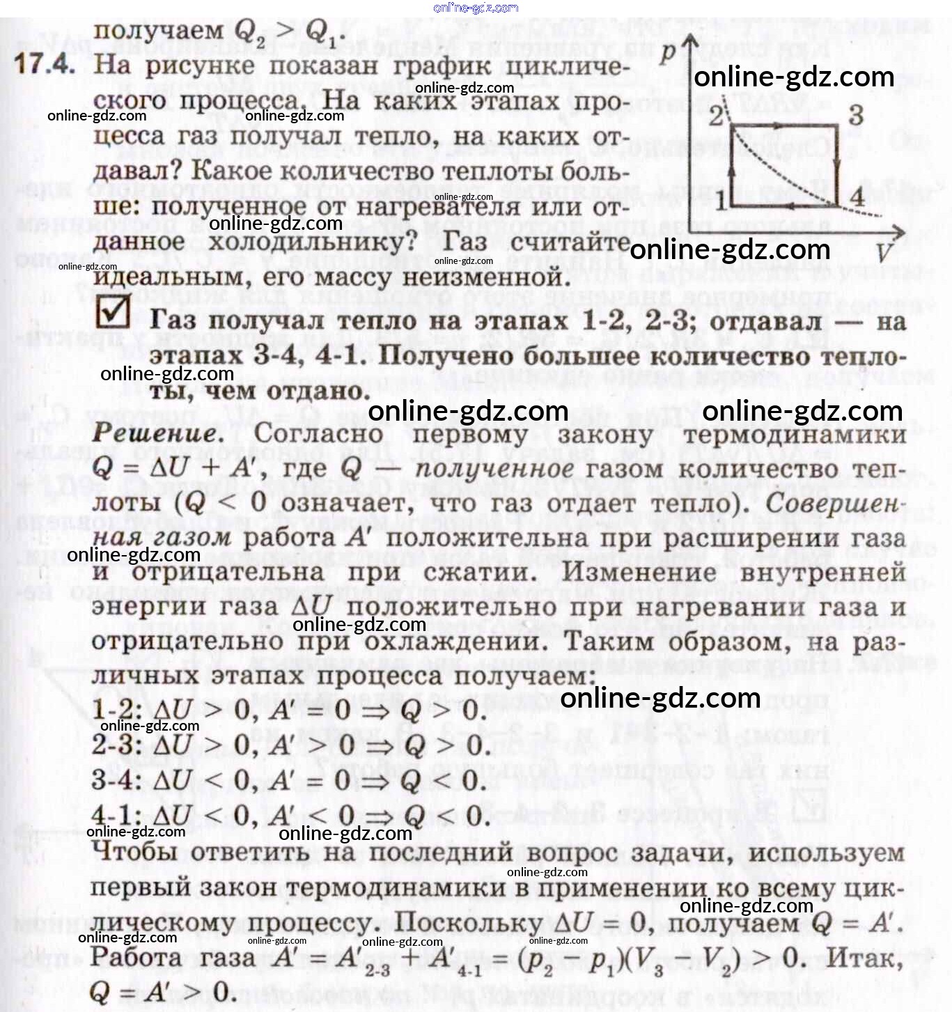 Готовые домашние задания по Физике за 10, 11 класс Задачник Гельфгат, Генденштейн Профильный уровень 2021 - 17. Законы термодинамики 17.4