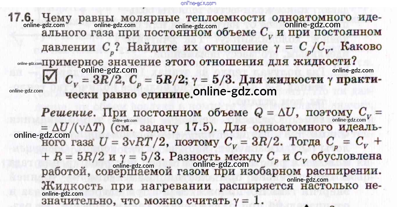 Готовые домашние задания по Физике за 10, 11 класс Задачник Гельфгат, Генденштейн Профильный уровень 2021 - 17. Законы термодинамики 17.6