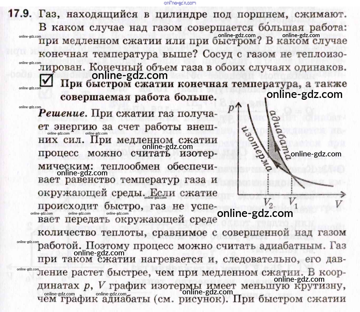Готовые домашние задания по Физике за 10, 11 класс Задачник Гельфгат, Генденштейн Профильный уровень 2021 - 17. Законы термодинамики 17.9