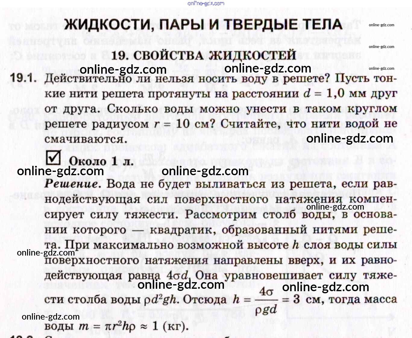 Готовые домашние задания по Физике за 10, 11 класс Задачник Гельфгат, Генденштейн Профильный уровень 2021 - 19. Свойства жидкостей 19.1