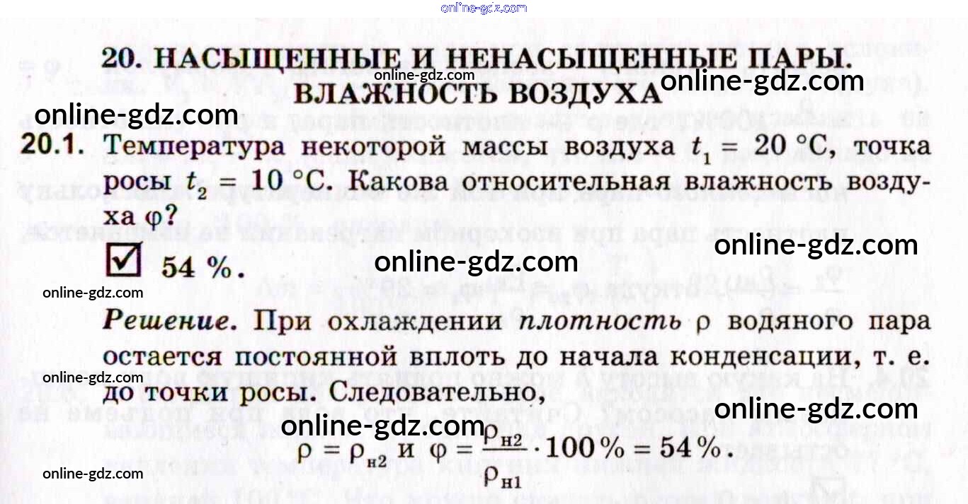 Готовые домашние задания по Физике за 10, 11 класс Задачник Гельфгат, Генденштейн Профильный уровень 2021 - 20. Насыщенные и ненасыщенные пары. Влажность воздуха 20.1